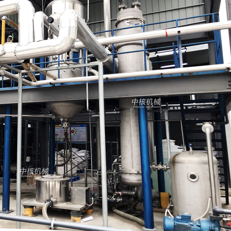 3.整套工藝為真空條件下蒸發(fā),溫度相對(duì)較低,蒸發(fā)速度快,蒸發(fā)耗能低,蒸發(fā)濃度高,使粘度較大的料液容易流動(dòng)蒸發(fā),不易結(jié)垢。