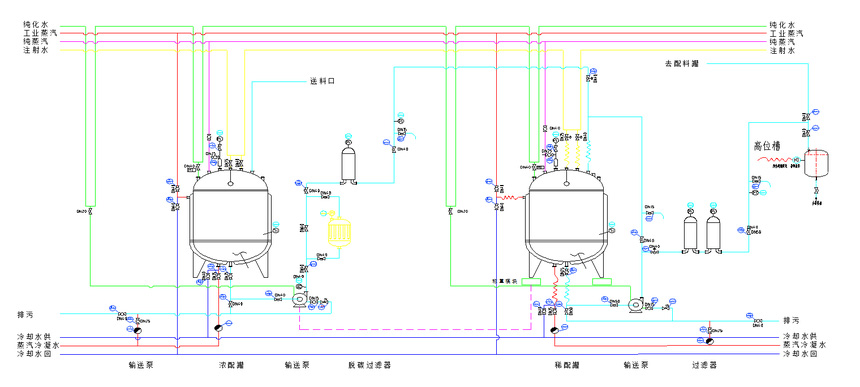 大輸液小針劑配液系統是制藥行業一條常見的生產線,主要設備有濃配罐、藥液泵、濃配過濾器、稀配罐、藥液泵、稀配過濾器等組成。大輸液小針劑配液生產線適用于制藥行業的濃稀配液之用,罐體設置夾套,可加熱和冷卻,內表面鏡面拋光,管口拉拔,衛生無死角,符合GMP標準。由于對滅菌的要求,因此濃配罐、稀配罐均有在線清洗和在線滅菌功能,衛生,配液均勻,準確。全自動的配置稱重模塊,配液精準,效率高,安全可靠。